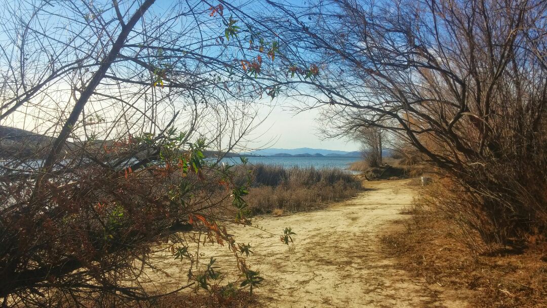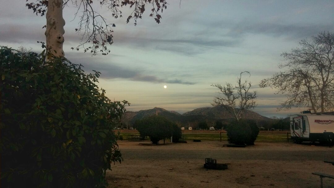 Leaving Harley with a few air horn blasts, we headed southeast (on the 10 to the 60 to the 15) to Lake Skinner County Park, a fairly non-descript campground overlooking lovely Lake Skinner, about 15 miles northeast of Temecula, CA. Kind of a stretch squeezing 43′ into a 40′ site but they don’t seem to mind.