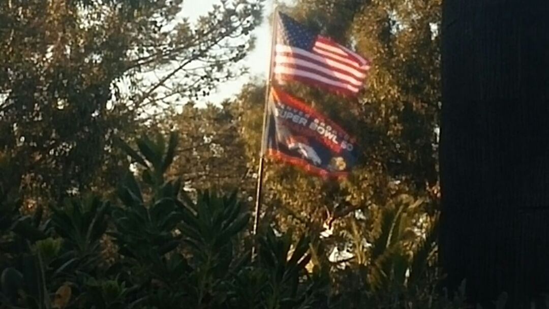 Back at the ranch, our neighbor got his new Bronco Super Bowl Champs flag.