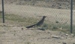 Beep-beep: almost daily, this roadrunner would scamper through our site, pause as he approached the fence, then would jump up on it with one wing flap. Luna chased one of these once. She was probably fast enough to run it down but that flying part was disappointing for her.