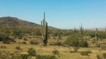 Casa Grande Mountain Park: before the temperatures soared to near 100 earlier in the month, we took a prickly hike among the suagaros in this local park. We wandered off the trail at one point and we’re immediately attacked by jumping Cholla cactus balls, or, if you’re scientifically inclined, cylindropuntia fulgida. The name is a bit misleading. Older pieces of the plant fall off but these parts, containing a dozen or more spikes, are so light that the wind will take them as will a brush with clothing, or, so it is reported, by static electricity. Luna had two on her face which she immediately made worse by trying to swat them off. Andrea and I each attracted one and then got poked again trying to clean up Luna. Lesson learned. Stay on the trail when Cholla cactus present. Those needles are sharp.