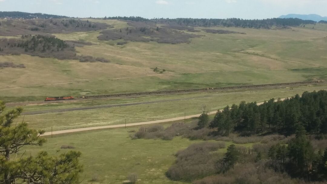 The air was so clear we could see the Spanish Peaks, 94 miles to the south. You have to look closely just to the left of where the mountain shoots up. Snowcaps near the New Mexico border. (There’s snow all over the mountains out here.)