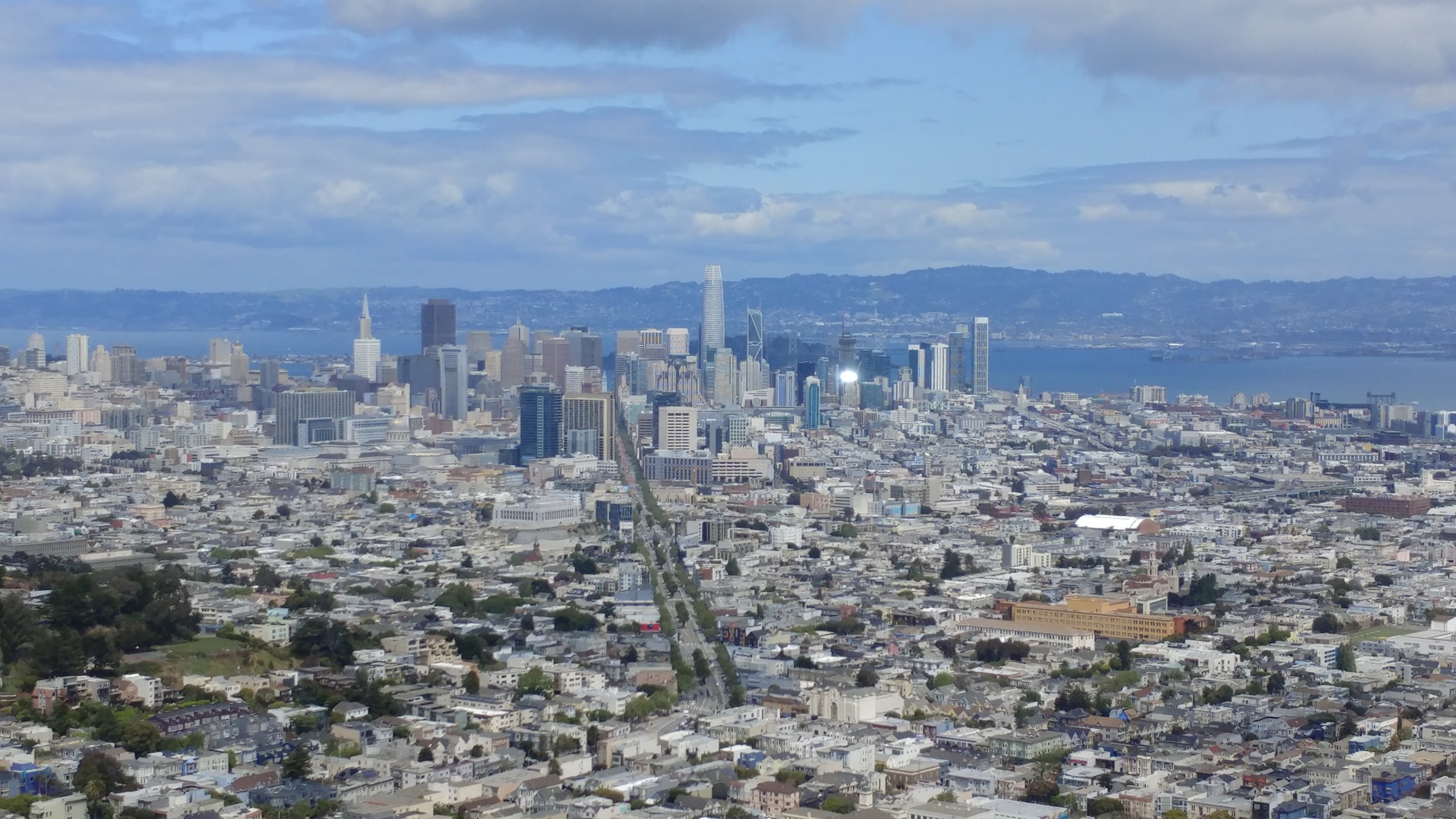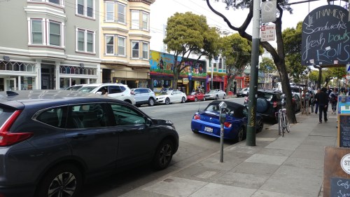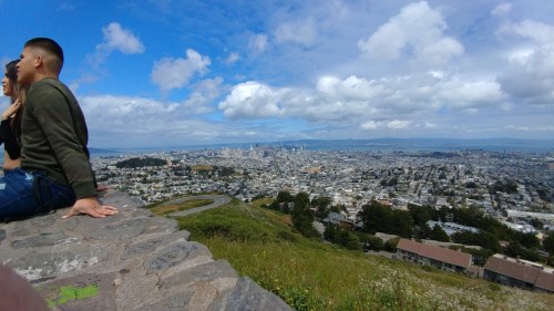 We went up to Twin Peaks. No, not the high-brow restaurant – wait, my editor says it’s a high-bra restaurant and there aren’t any in San Francisco. You ever go to a Twin Peaks? Nevermind. In this town it really has to do with geography and altitude. This is San Francisco, after all, with a lot of hills. Probably a lot of transmission shops, too. Also the location for that car chase scene in Bullitt (spelling? No internet). You know, Ford built a 2019 Bullitt Mustang to commemorate Steve McQueen’s car. I kind of liked the bad guy’s Charger. But, I’m wandering. Let’s go up to Twin Peaks.