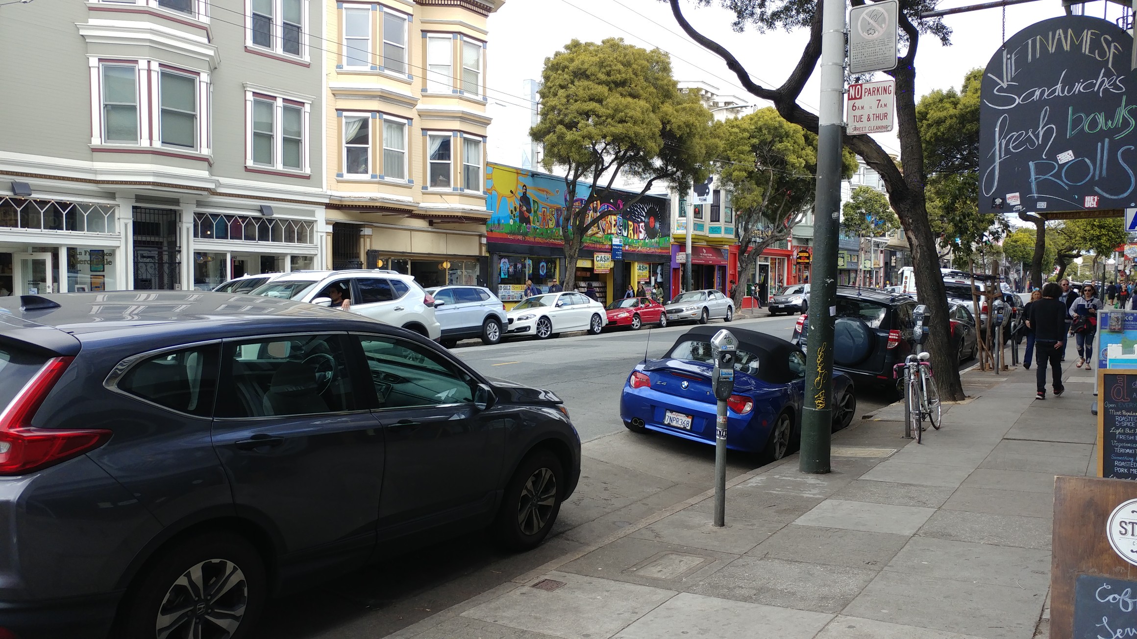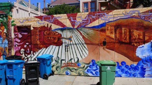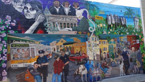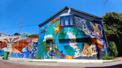 So, there you have Twin Peaks and The Wave Organ. We skipped Fisherman’s Wharf and a billion tourists but just at the edge of that mania we stopped at a small place called Crabsters and picked up a lobster/crab roll and clam chowder. When we were in Chinatown we brought home what the shop called “dumplings” but we call them big, fat rolls stuffed with some meat that tastes like moo shoo. And in Haight-Ashbury,