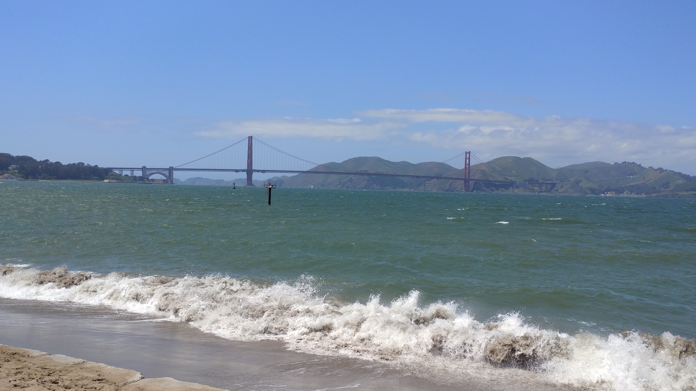 Something caught my eye moving under the bridge. That bubble right in the middle and under the bridge is the sail of a windsurfer. Cool location to do your thing.