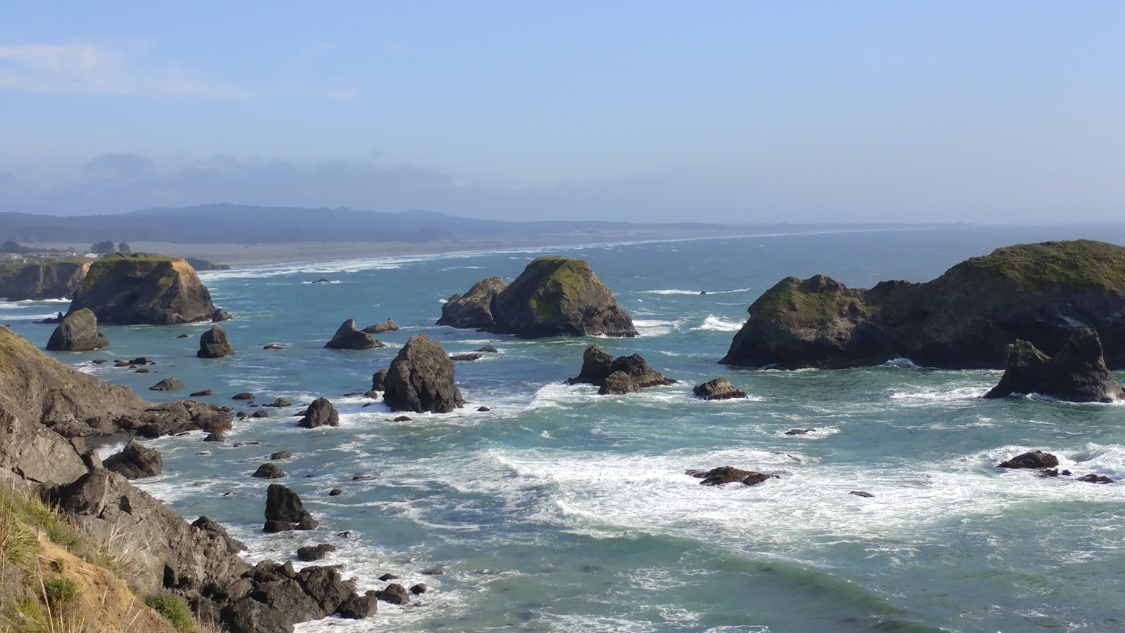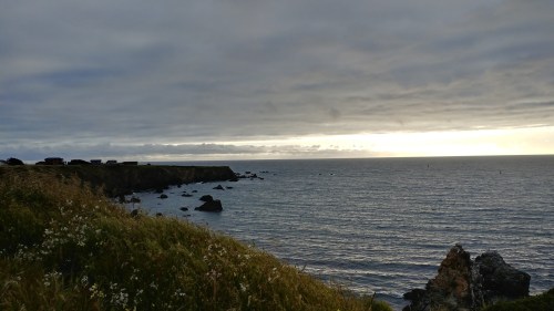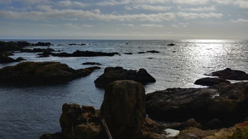 Of course, we may have to drive it again leaving here, but if you only have to do it once, your heart will only age an extra 30 days, not 60. Now, the good news, this place is gorgeous. Remember, we were going to Ft Bragg? We are in Harbor RV Park, a small, locally owned, homey place, with only Pomo Bluffs Park, a small city park, between us and the ocean, over the cliffs.
