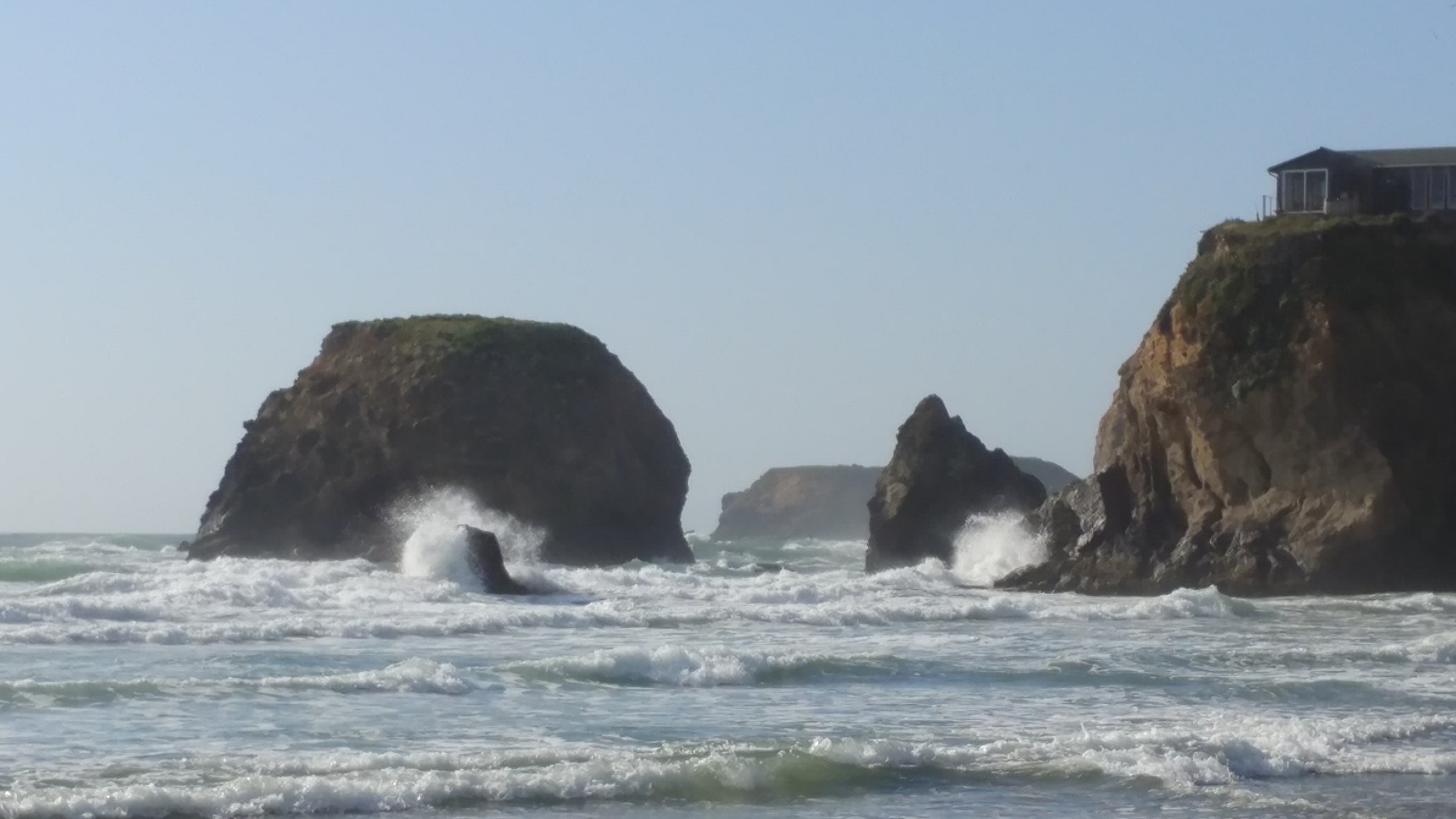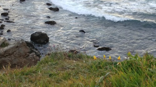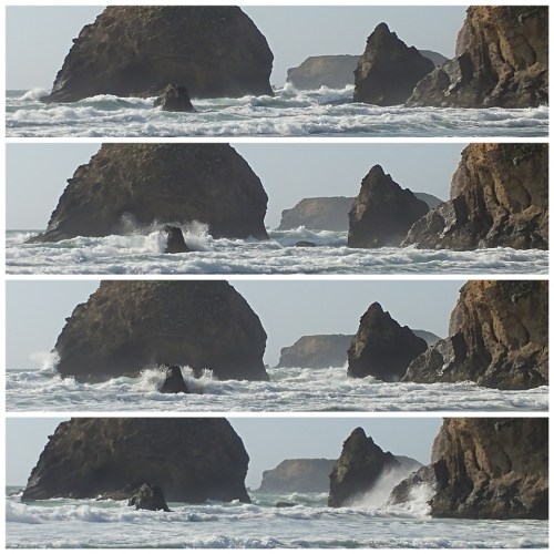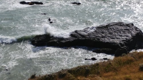 So, we’re on another cliff and I’m drawn to waves crashing on rocks.