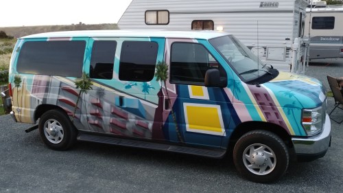 We got back to the RV, packed up, noted the odd paint job on this van parked next to us,