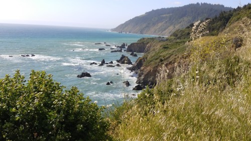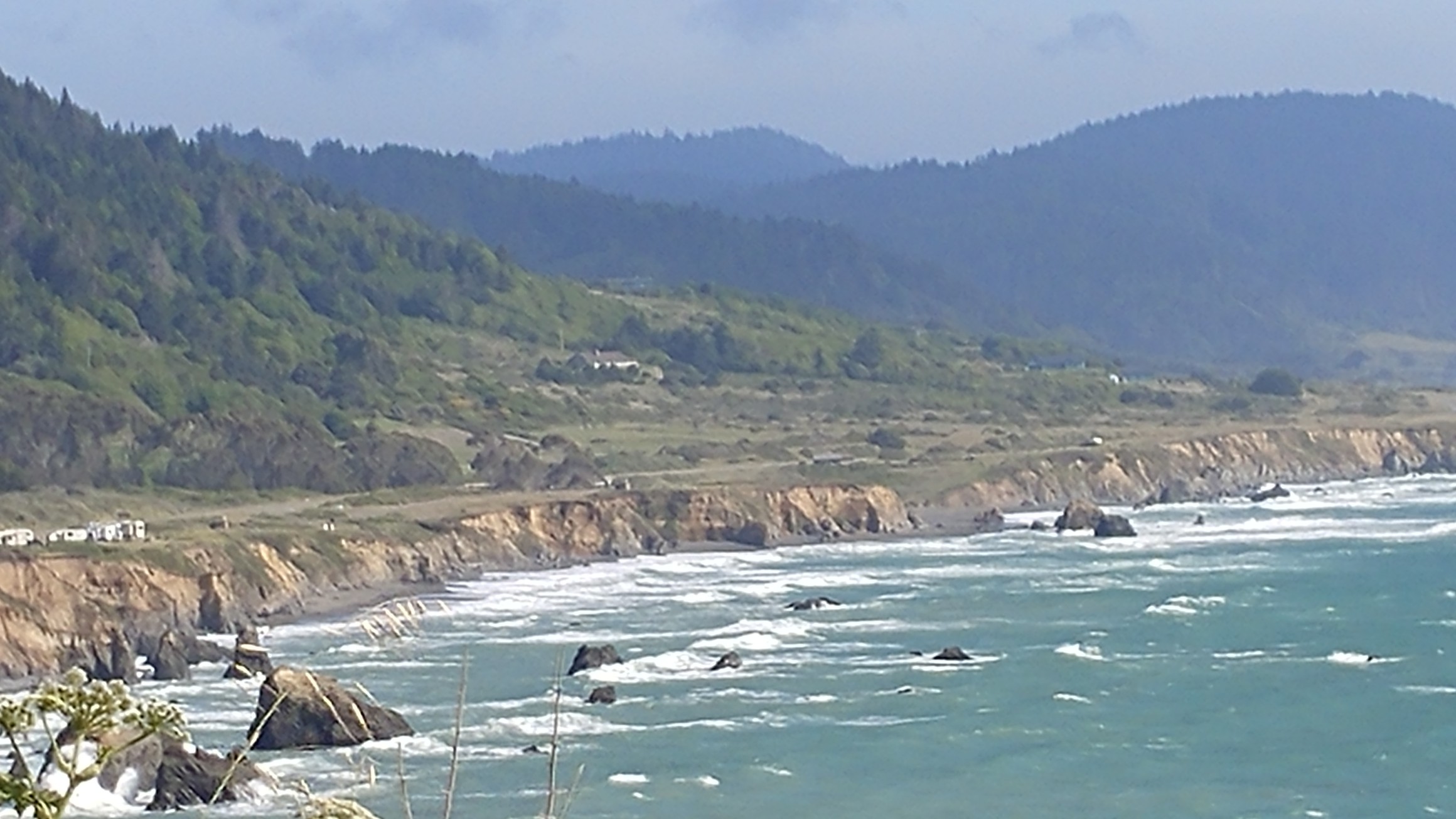 Remember how I hated Rt 20, the main east-west route to Ft Bragg from the big highway, “the” 101? Yeah, I know, Californians always prefix their numbered highways with “the”. When in Rome,… Anyway, I really didn’t want to drive back to the 101 on 20 to get to our next destination, Myers Flat (oh, just look it up), when Rt 1 angled right into it further north. So, scientific method was in order. We drove up the 1 to find out for ourselves why nobody online – except one, very experienced RV driver – advised driving a big rig north of Ft Bragg. Let me present you with some evidence of our research:
