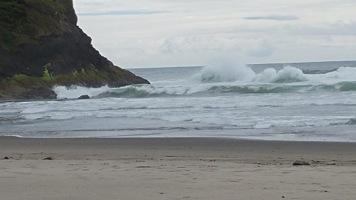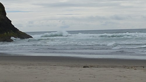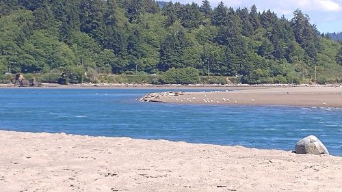 Neskowin Creek RV Resort. Again, excellent water, pure as filtered water and soft. After the one day of intense rain, it was nice enough. Most sites are out in the open – the outside rows back up to trees. The rabbits are everywhere, as are their droppings. Where are the Bald Eagles when you need them? I still haven’t seen one. No big birds in a week. Anyway, let’s give the resort an 8.