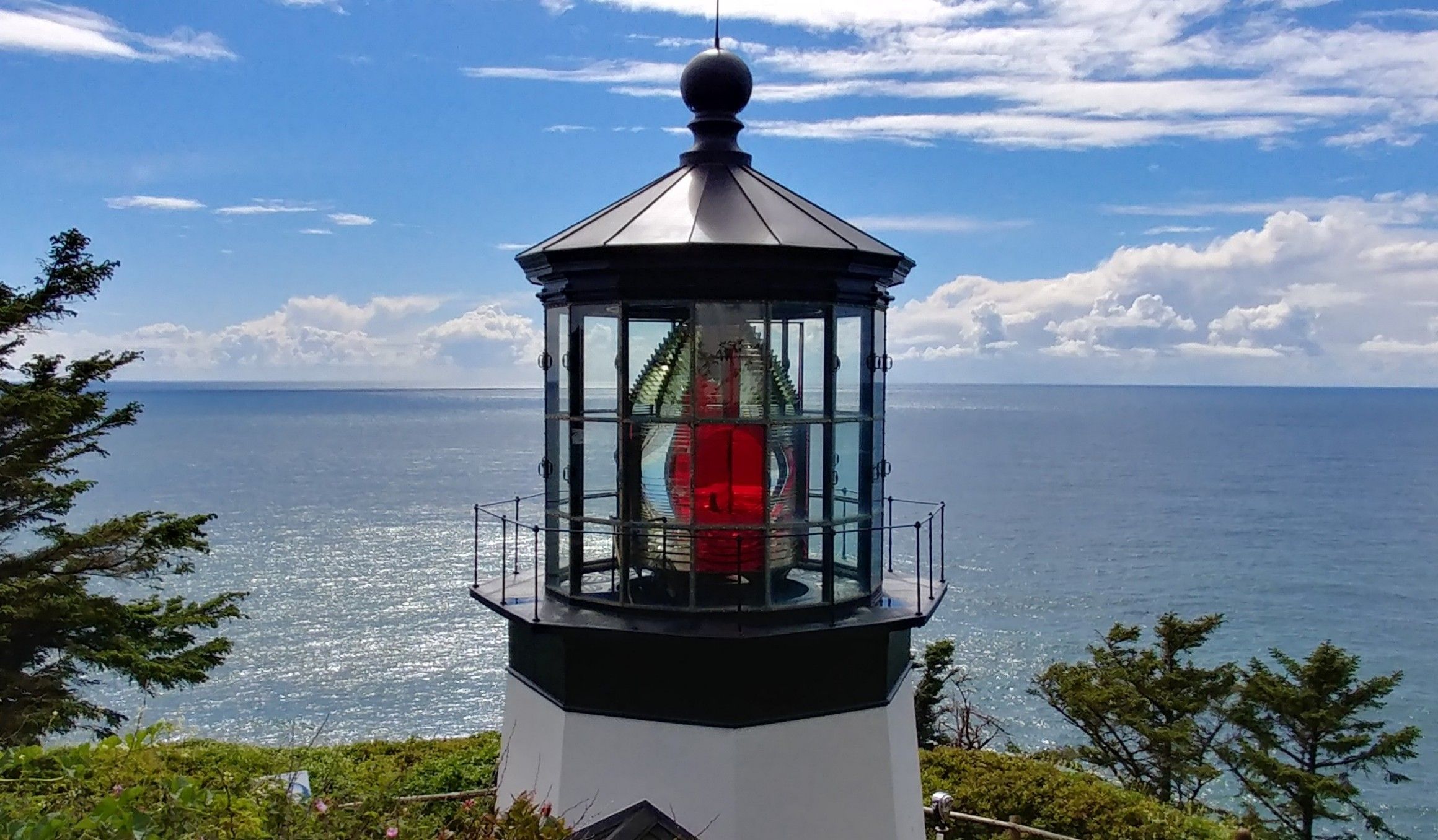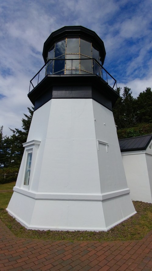 So off we went to the Tillamook Cheese Visitor Center, a makeshift barn. Their new, impressive looking visitor center opens on the the 18th. The place was packed. We got six samples of cheese and bought an ice cream cone – rasberry vanilla with white chocolate chunks. Deelish! And then went to see if the Cape Mears Lighthouse was anything.